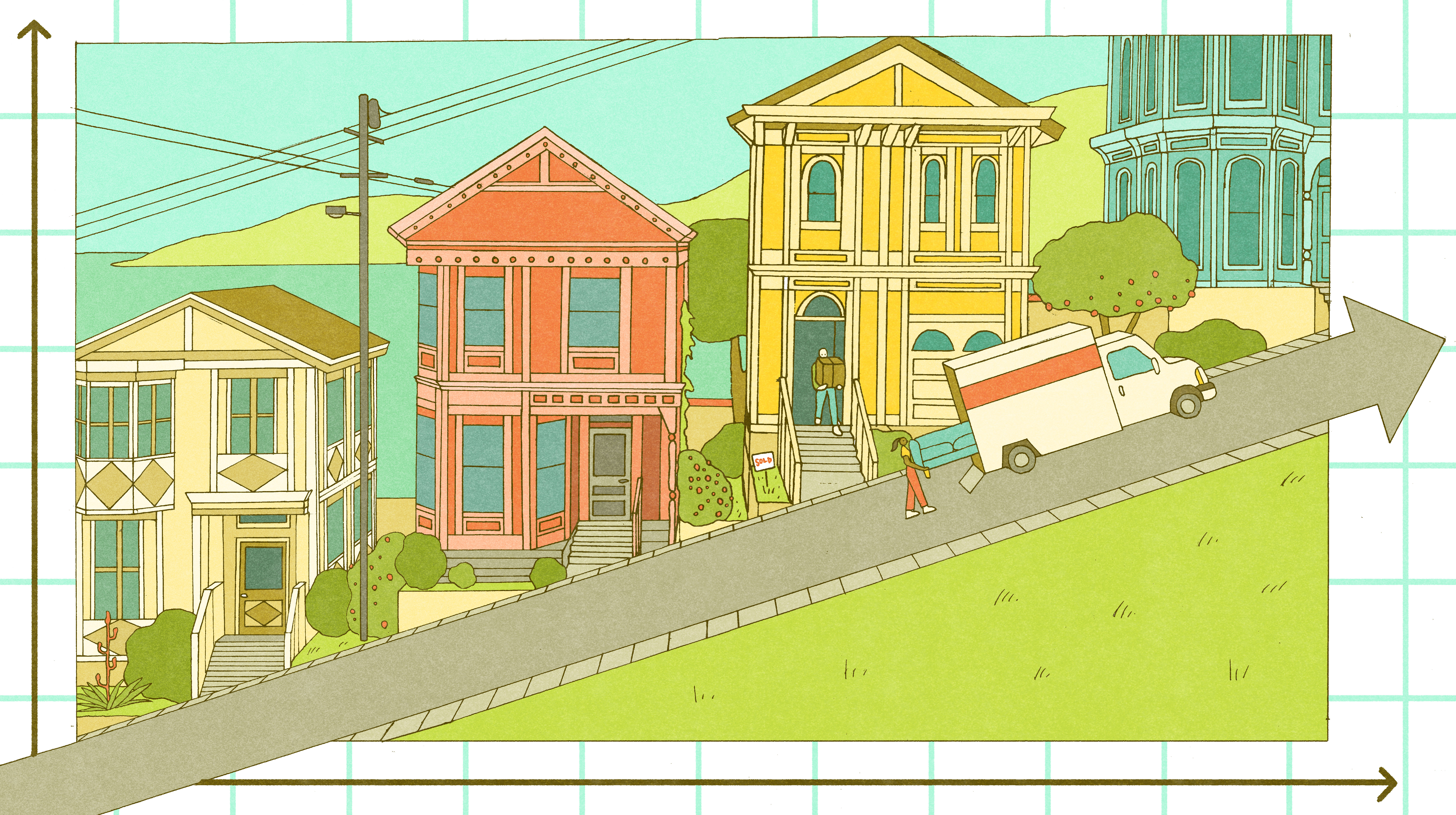 Illustration for NBC News about rising housing prices in the Bay Area.