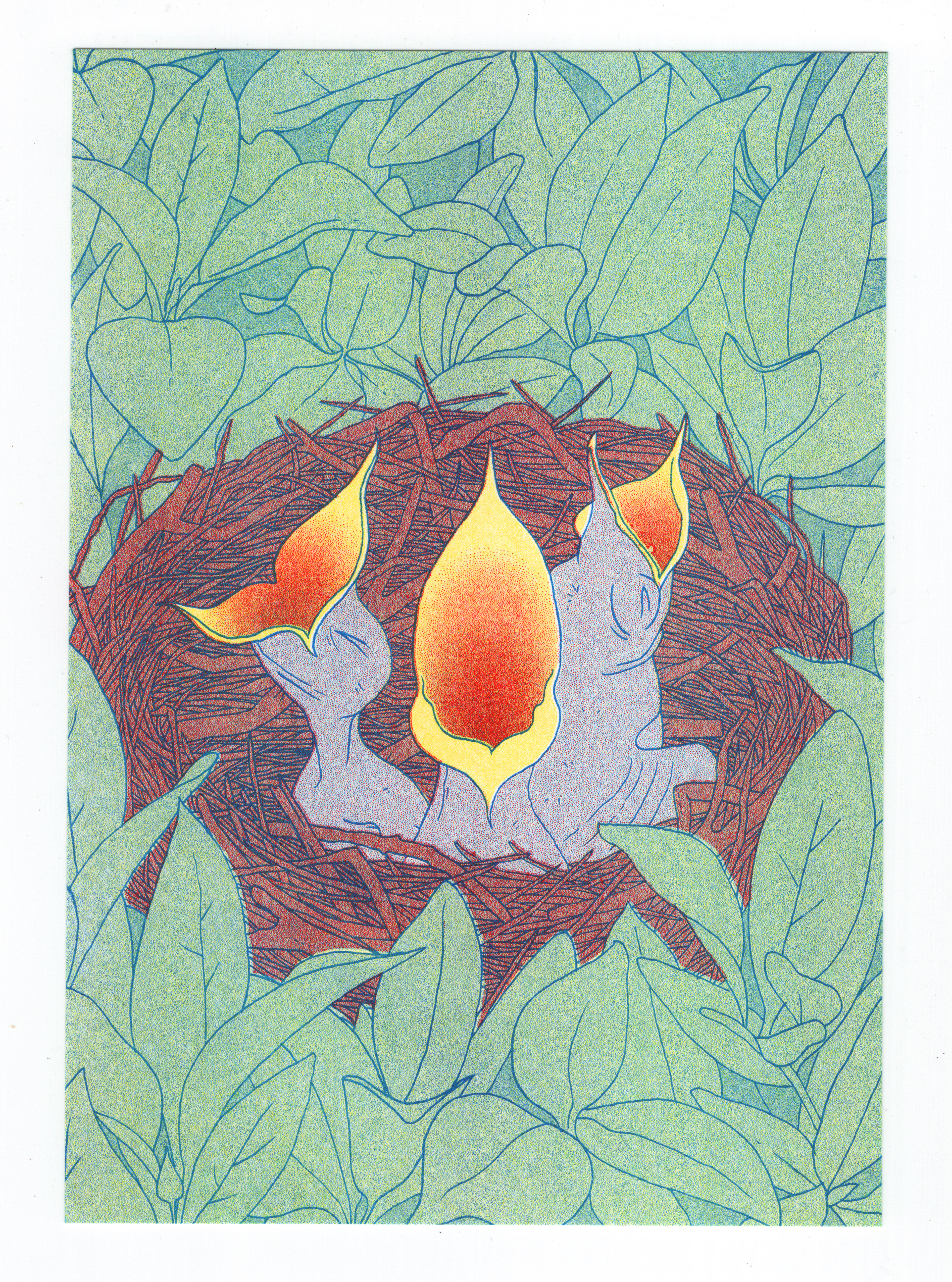 Baby Mockingbirds A5 Riso Print