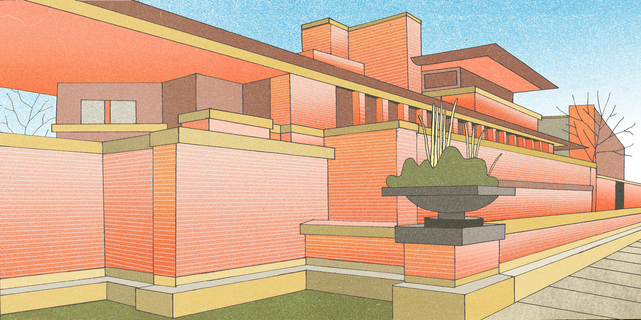 Illustration for an article in The Culture Trip about Frank Lloyd Wright buildings in chicago